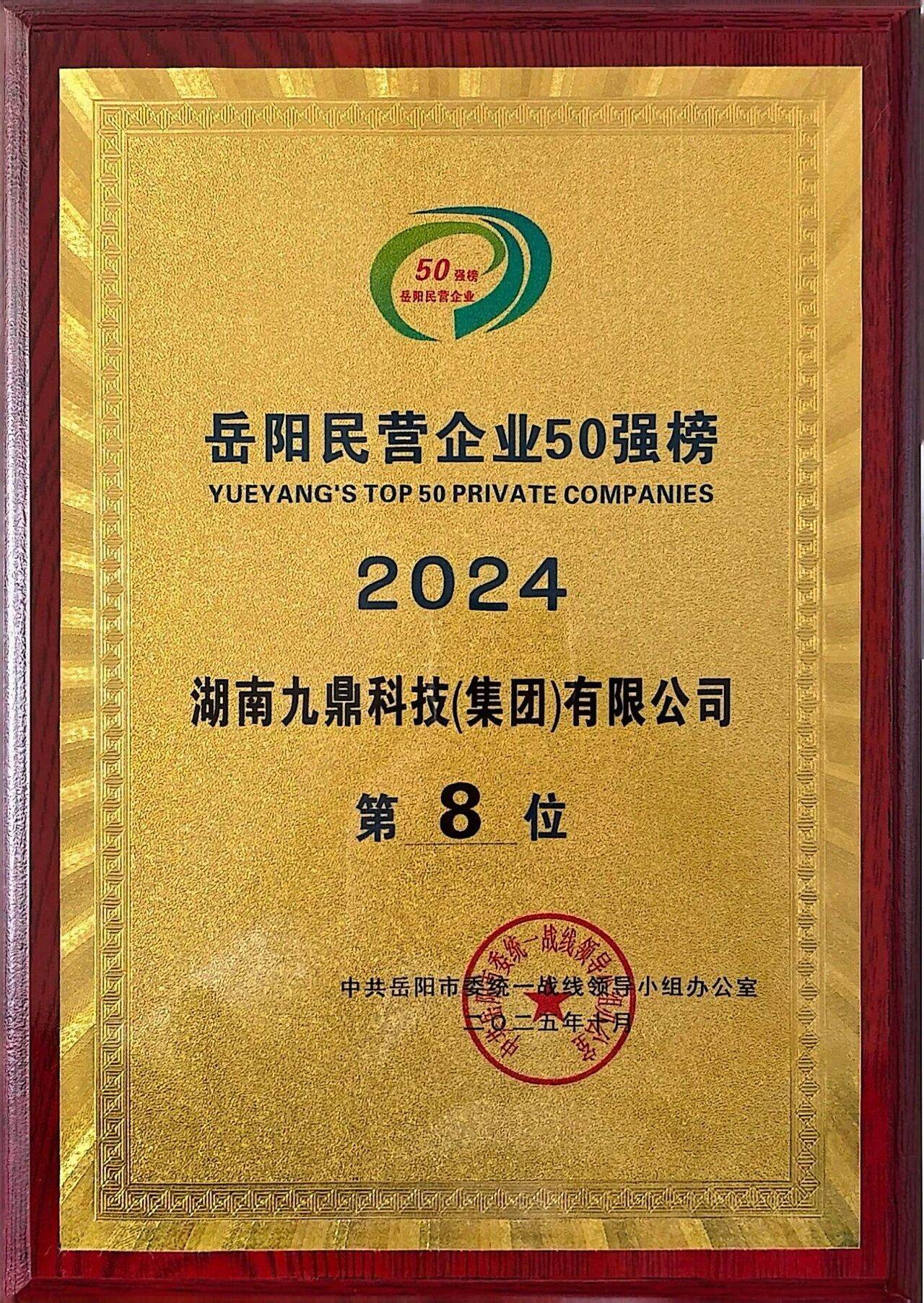 岳阳市第二个“岳阳企业家日”主题活动,湖南九鼎科技(集团)有限公司荣膺岳阳民营企业第8位