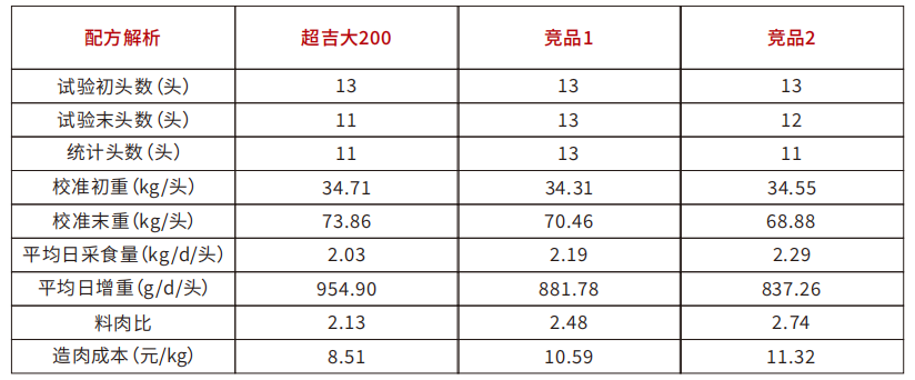 (1) 小猪阶段共开展试验25次,试验猪头次达3822头,25次试验的日增重优于同档次竞品,料肉比、造肉成本比竞品低。