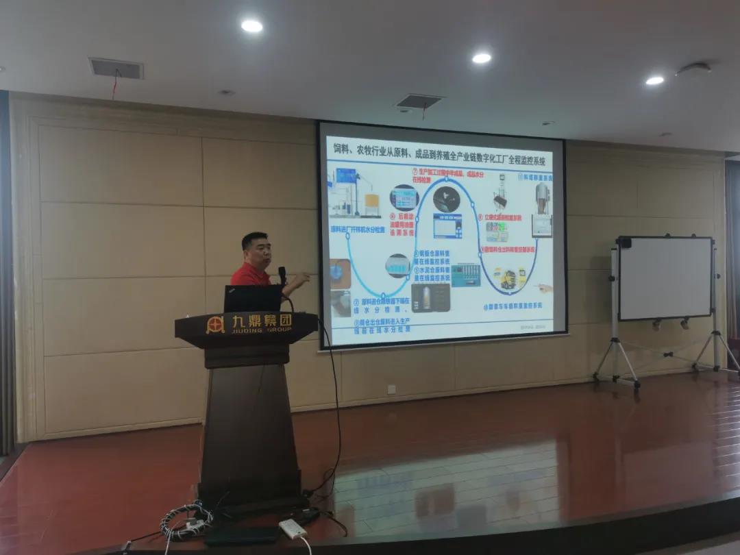 A, 感受智能化,落实工厂信息化的建设,樱之花智控公司就如何通过数字化工厂建设来实现生产加工工艺质量标准化、加工工艺全流程标准化,分别对微波水分在线监测系统、立袋式超差检重系统、散装饲料称重控制系统、后喷涂油罐用油量追溯系统进行了介绍,让大家了解到行业信息化建设的变化,迎着集团信息化建设的浪潮,切实落好实自身工厂信息化的应用。 B,诺力达智能控制公司通过播放行业内机器人作业现场视频,对机器人的操作及维护保养做了简单的知识培训,在现场为各位提出的关于机器人使用中存在的问题进行答疑。 C,科创公司从配件工艺选型方面对粉碎、制粒效率提升进行现场培训交流。